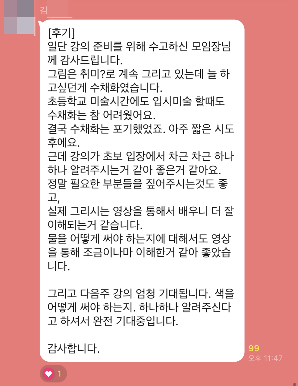 매주 1회 무료로 수채화 공부방을 운영중입니다.